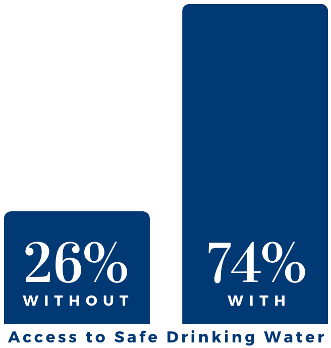 Globally, 2.2B+ people lack access to safely managed drinking water services, 884M+ do not have safe water to drink, and about 1 in 3 schools lack safe drinking water access.